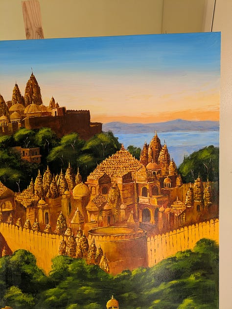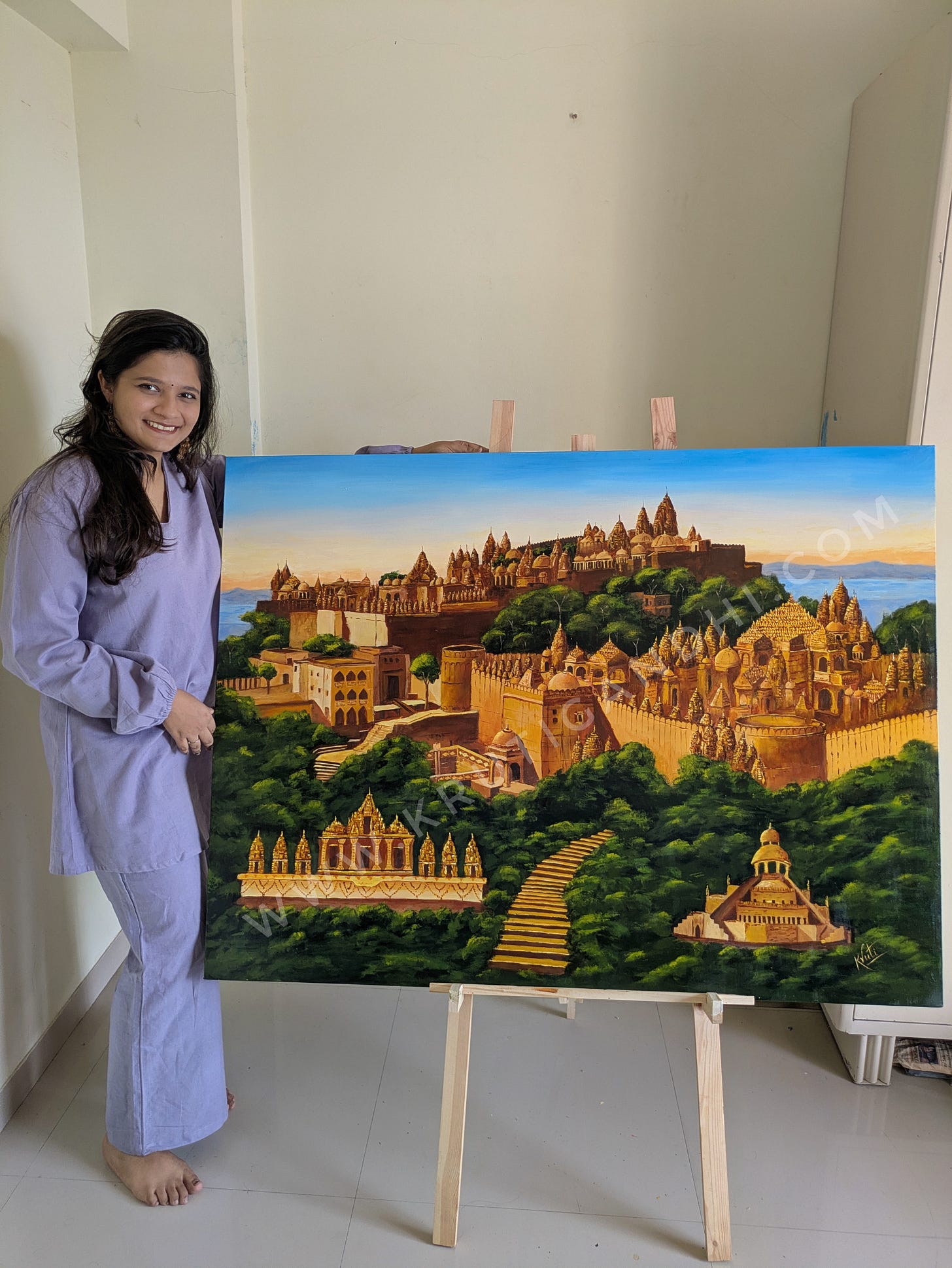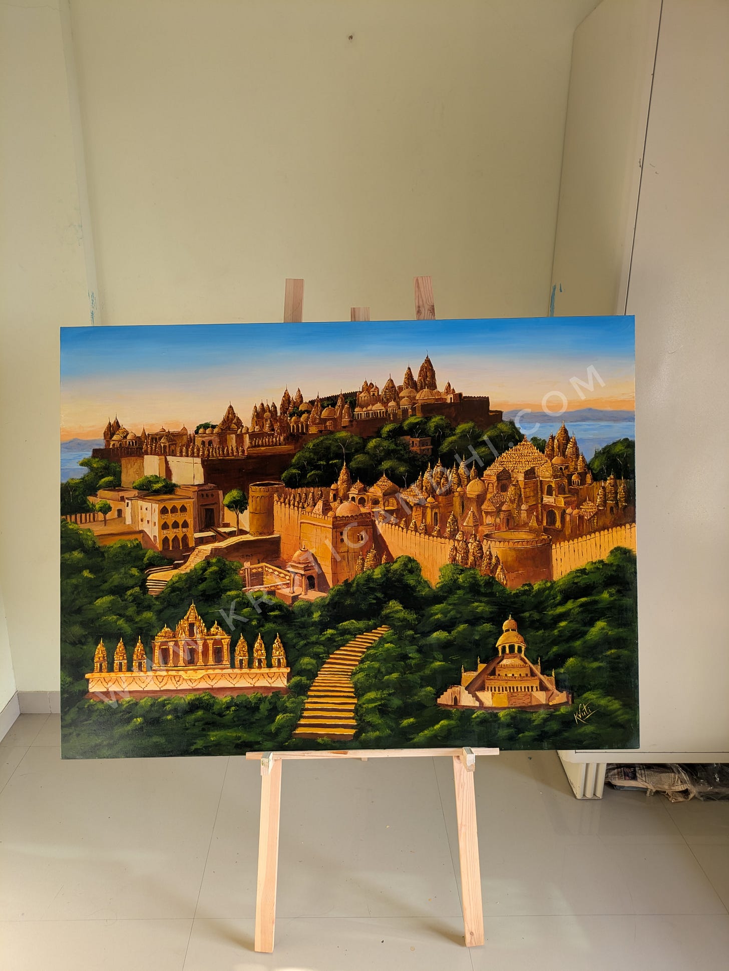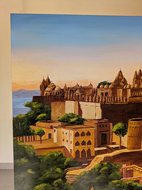 Recently, I had the opportunity to create a large commissioned painting of Palitana — a project that was both deeply exciting and unexpectedly challenging.