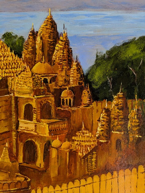 If you would like to commission a painting of a sacred place, temple, or landscape that is meaningful to you, feel free to reach out through my website. I would love to create something special for your space.